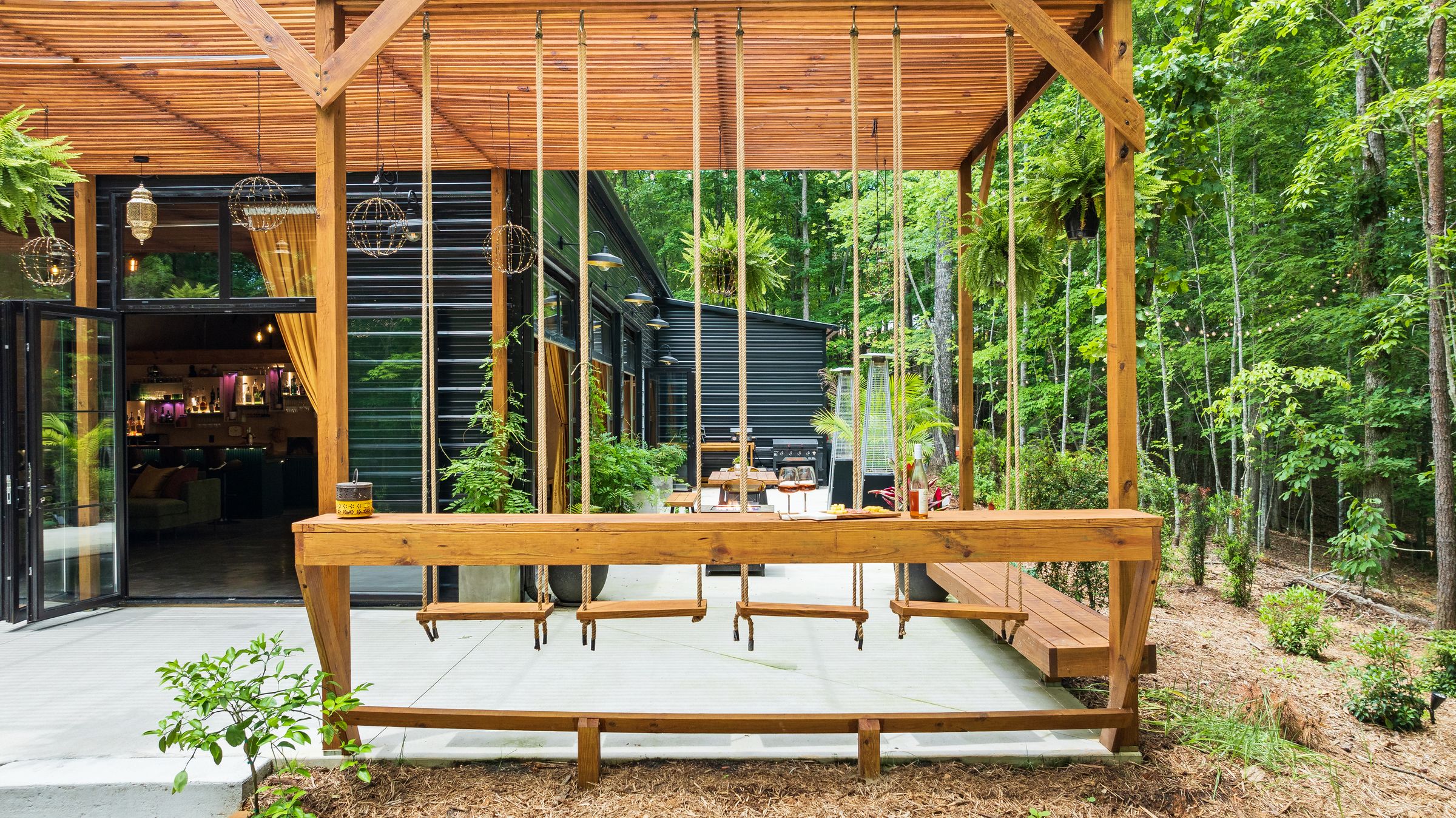 Nestled in the quiet woods of The Nest at Brannon Ridge, Oak & Ember is a versatile, industrial-modern event space designed for connection, celebration, and creativity. With sleek metal architecture, expansive glass doors, and a flexible open layout, Oak & Ember offers a clean, striking backdrop for gatherings of up to 80 guests, with accommodations also available in The Nest also managed by Nourish Vacation Homes.